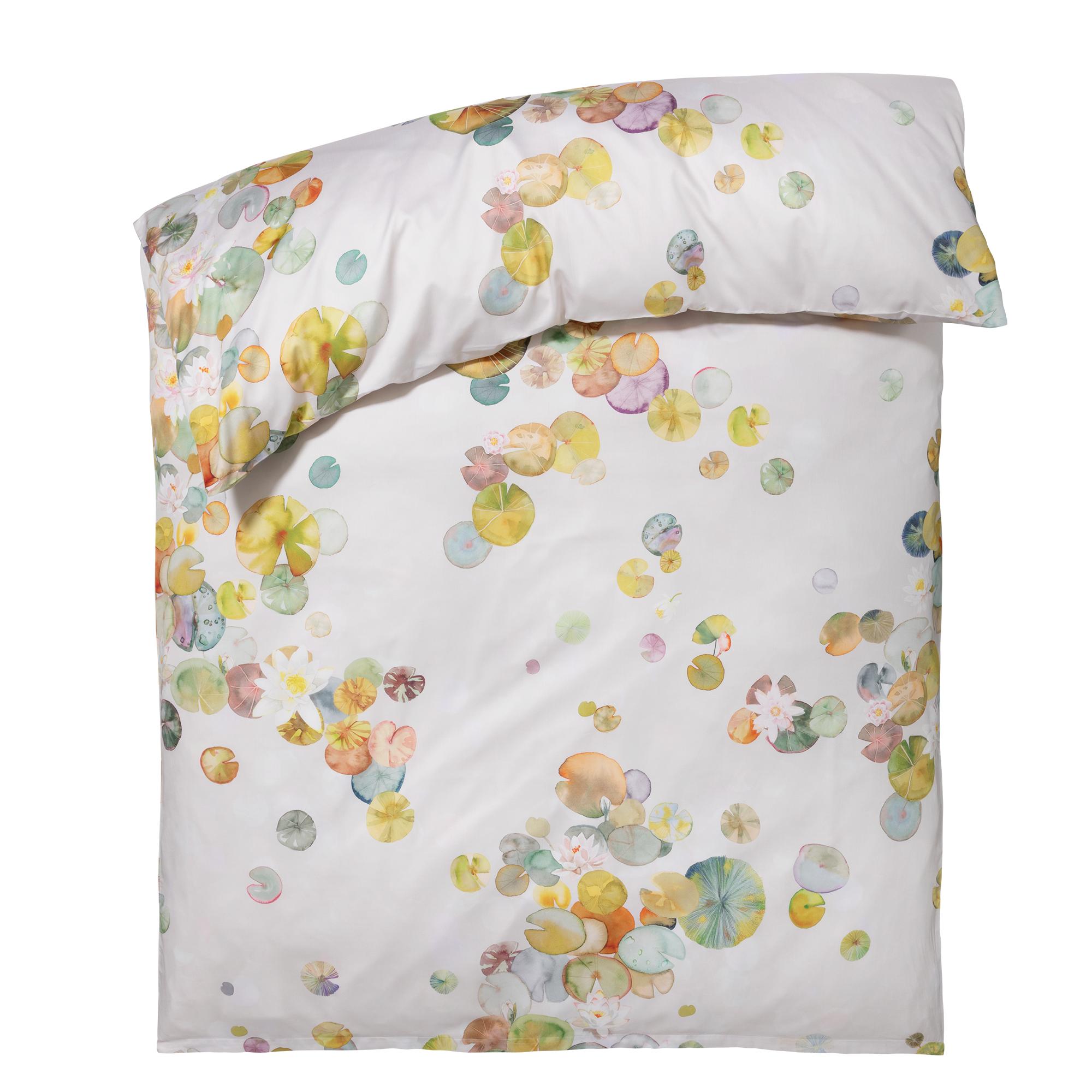 Wie auf der spiegelnden Oberfläche eines stillen Sees entfalten sich aquarellierte Seerosenblätter und -blüten auf dem Bettbezug "Ninfea" von Christian Fischbacher. Das sanfte Farbspiel und die fließenden Formen verleihen dem Design eine natürliche Harmonie und eine beruhigende Leichtigkeit.
