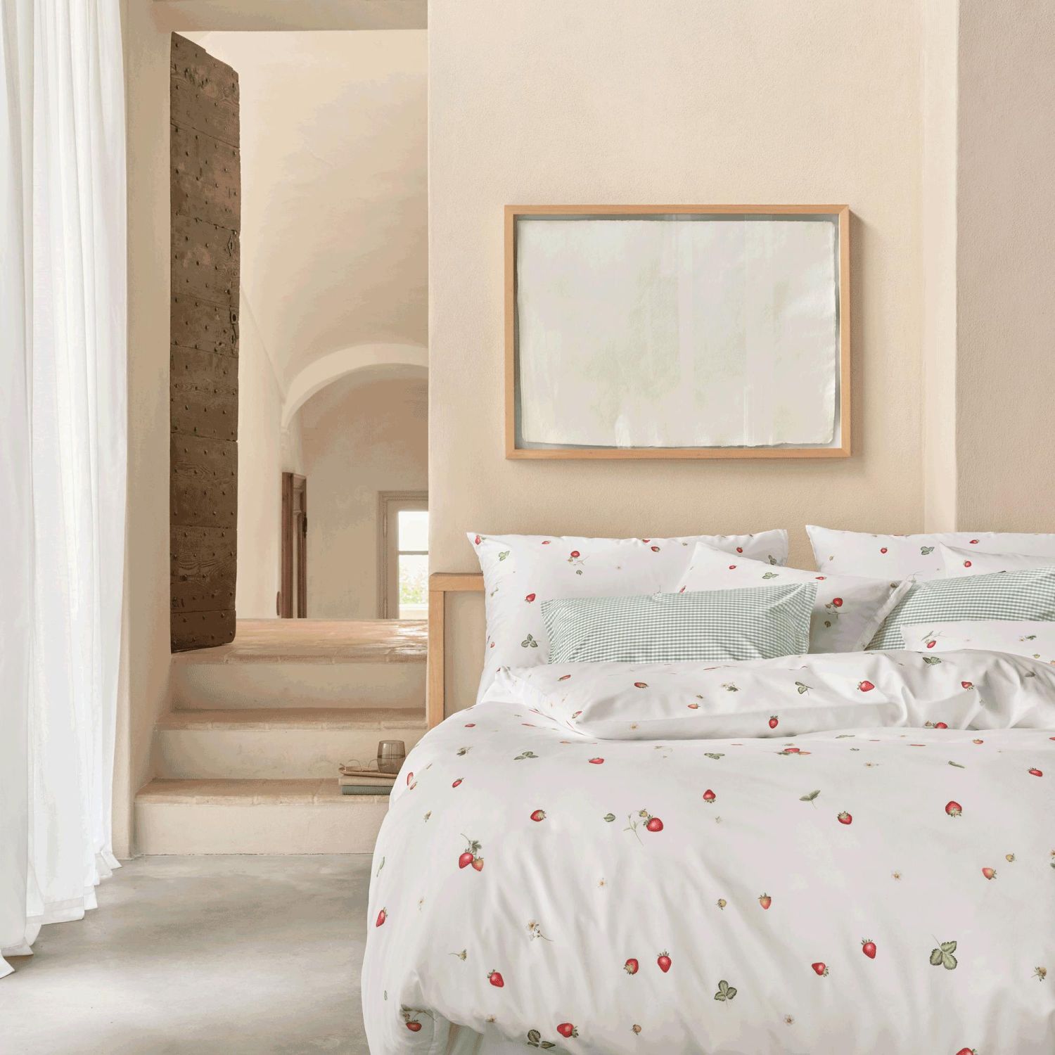 Freuen Sie sich auf warme Sommertage: mit dem Bettbezug "June" Noblesse von Schlossberg holen Sie sich die warmen Sonnenstrahlen in Ihr Schlafzimmer. Kreativ und detailliert gezeichnete Erdbeeren in Kombination mit luxuriöser Satin Qualität setzen einen individuellen Akzente in Ihrem Zuhause.