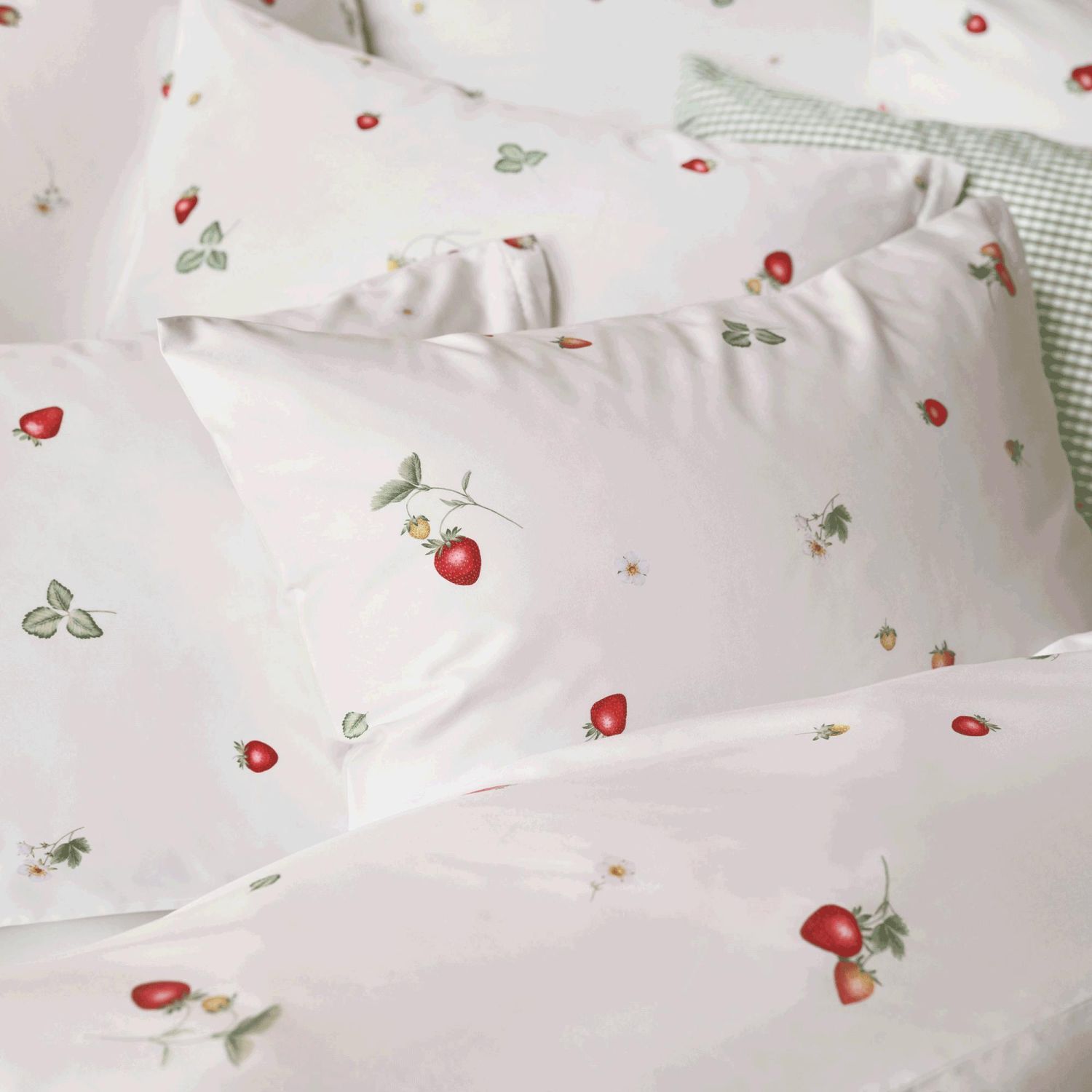 Freuen Sie sich auf warme Sommertage: mit dem Kissenbezug "June" Noblesse von Schlossberg holen Sie sich die warmen Sonnenstrahlen in Ihr Schlafzimmer. Kreativ und detailliert gezeichnete Erdbeeren in Kombination mit luxuriöser Satin Qualität setzen einen individuellen Akzente in Ihrem Zuhause.